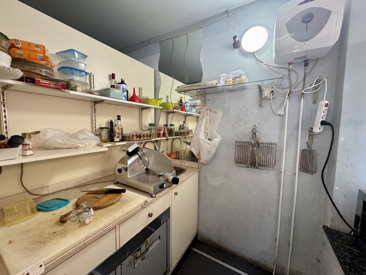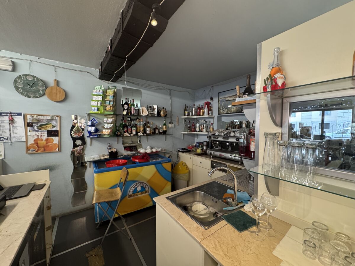 - Bancone a vista con piccola cucina sul retro